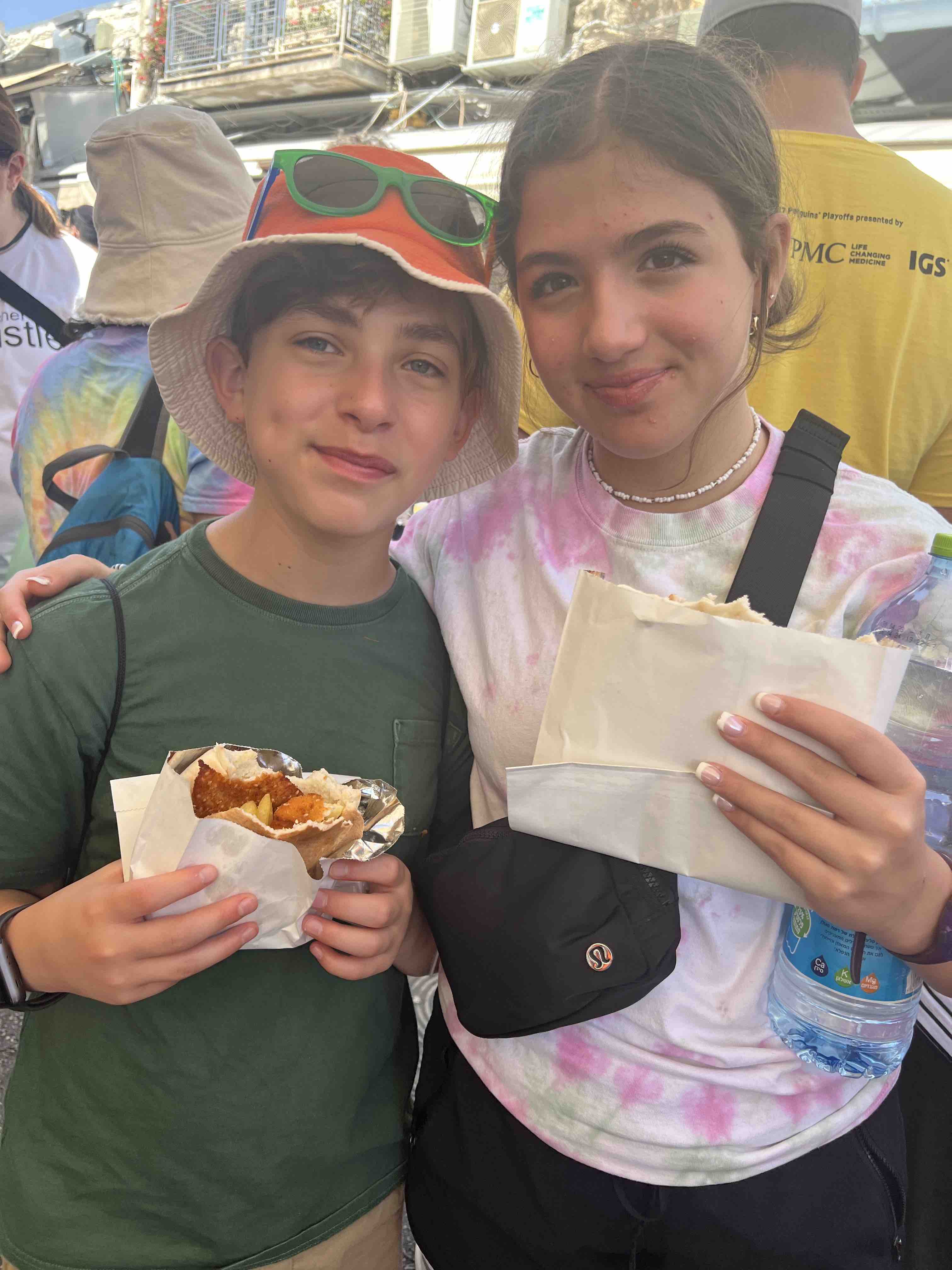 Just a short update as we are finally settling in our Jerusalem home base and trying to catch up a little on rest after a long day of travel. This afternoon, we braved the holiday crowds at Machane Yehuda (Jerusalem Market) for lunch and to stock up on freshly baked rugelach, fruit, and other goodies for Shavuot and Shabbat.